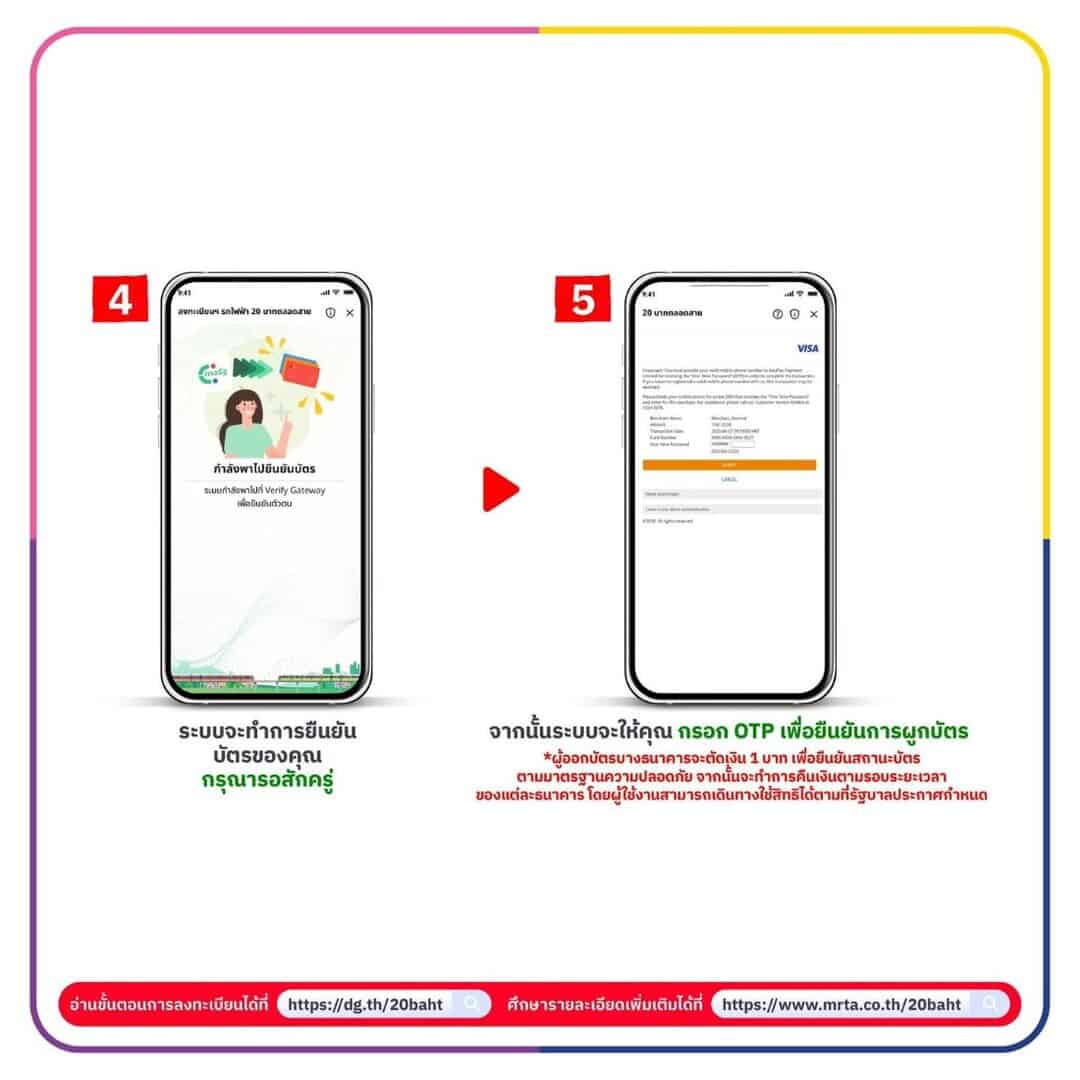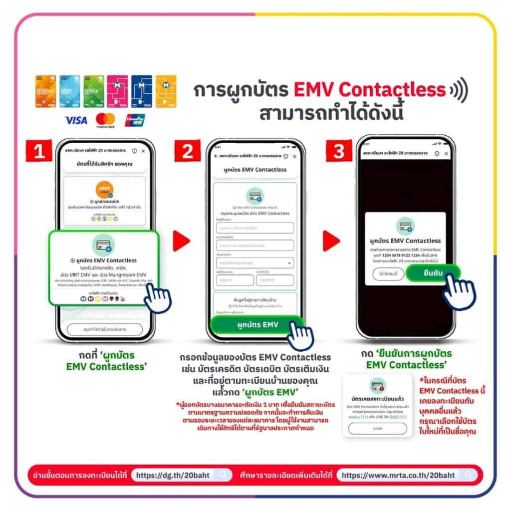 จากนั้นผูกบัตร EMV สามารถใช้ทั้งบัตรเดบิต บัตร EMV ของ MRT และ บัตรเครดิตของคุณได้ ทำการยืนยันการผูกบัตรให้เรียบร้อย