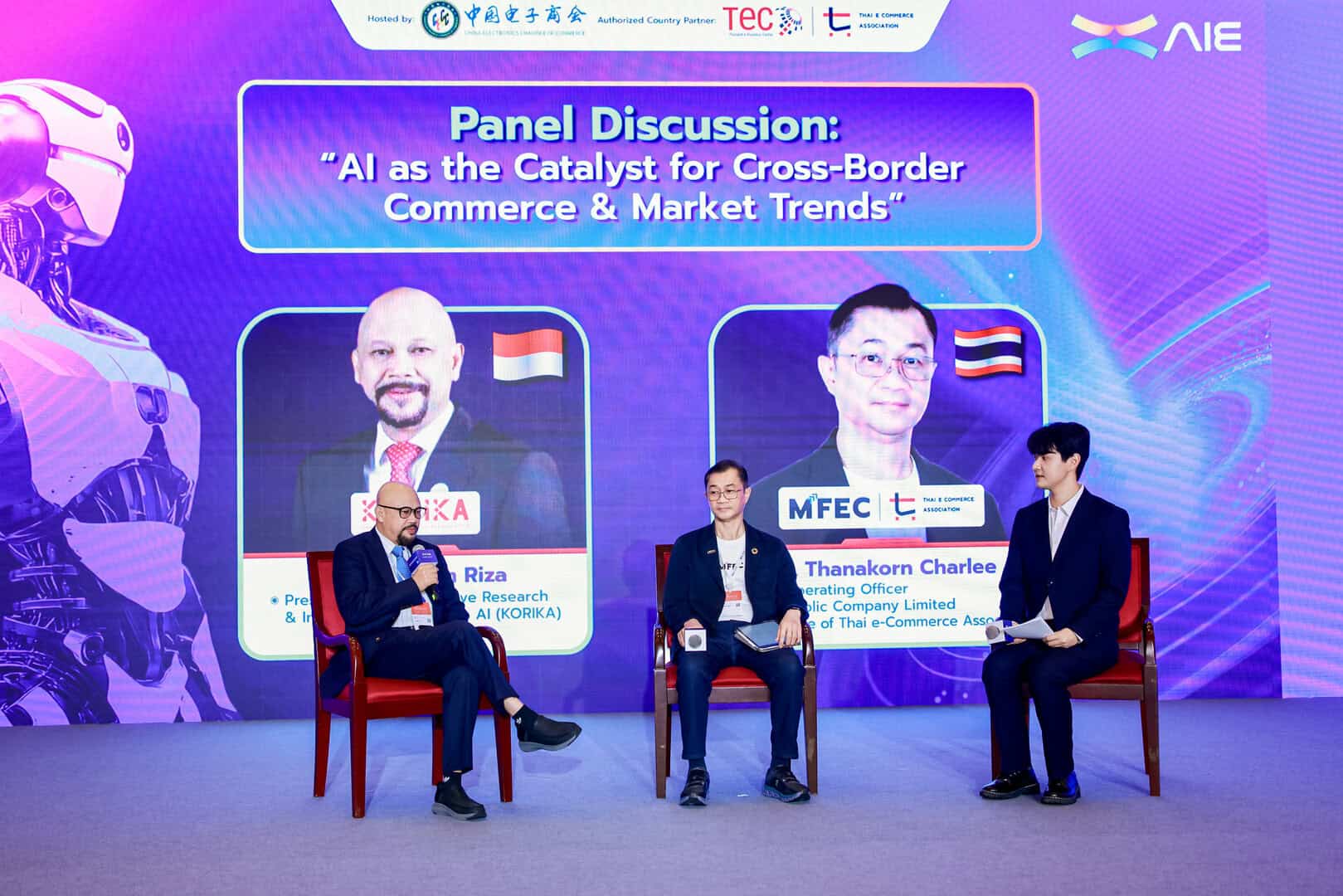 นอกจากนี้ ในวันที่ 4 ธ.ค. 2568 ยังมีการประชุมสำคัญ AIE Cross-Border AI & Innovation Exchange ซึ่งเน้นย้ำถึงการขับเคลื่อน AI และ Market Analytics เพื่อรองรับการค้าระหว่างอาเซียน, จีน และตลาดโลก มีผู้เข้าร่วมทั้งจากแบรนด์จากไทย-อาเซียนกว่า 40 แบรนด์ ซึ่งมีการวางตำแหน่งให้ ไทยและอาเซียนเป็นศูนย์กลางใหม่ (Emerging Hubs) สำหรับนวัตกรรม AI และการค้าดิจิทัล และงานนี้ยังมีเหล่า Speaker แนวหน้าของเมืองไทยมาร่วมแชร์ความรู้ด้วยมากมาย ซึ่งงานประชุมนี้ก็ได้เป็นการตอกย้ำความร่วมมือที่สำคัญระหว่าง ไทย จีน และอาเซียน เพื่อกำหนดอนาคตการค้าโลกที่ขับเคลื่อนด้วย AI