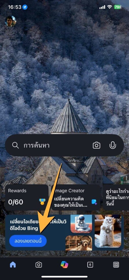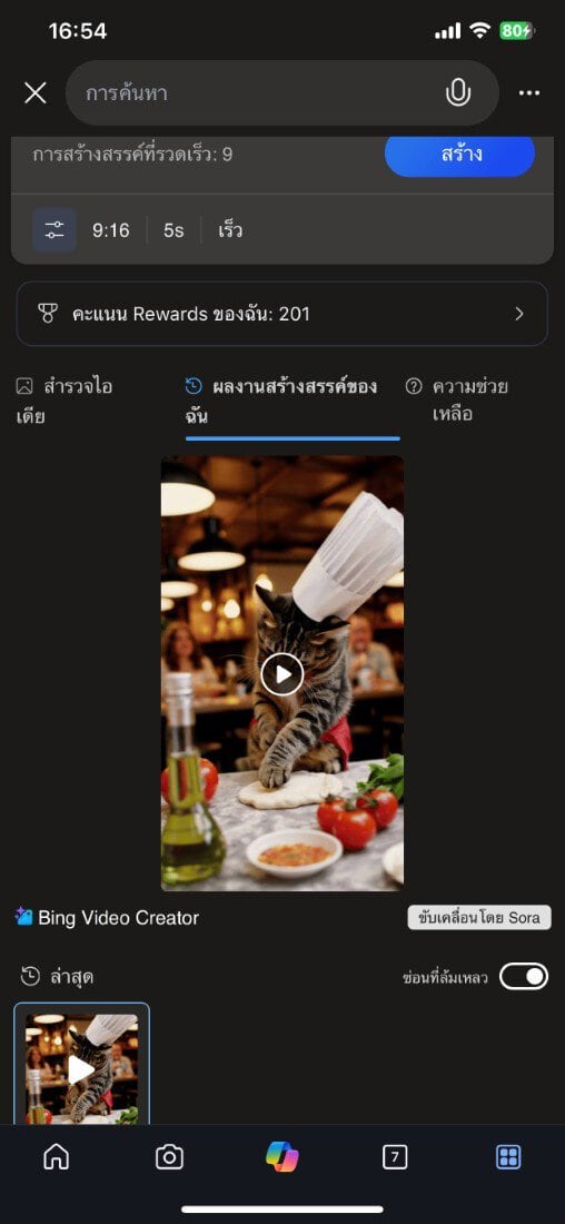 ดาวน์โหลดและเปิดแอป Bing: รองรับทั้ง iOS และ Android โหลดได้ทาง App Store , Play Store เข้าสู่ระบบด้วยบัญชี Microsoft: (สมัครฟรีหากยังไม่มีบัญชี) จากนั้น เลือกเมนู “Video Creator” ในแถบเมนูของแอป ตามภาพเลือก ลองตอนนี้เลย