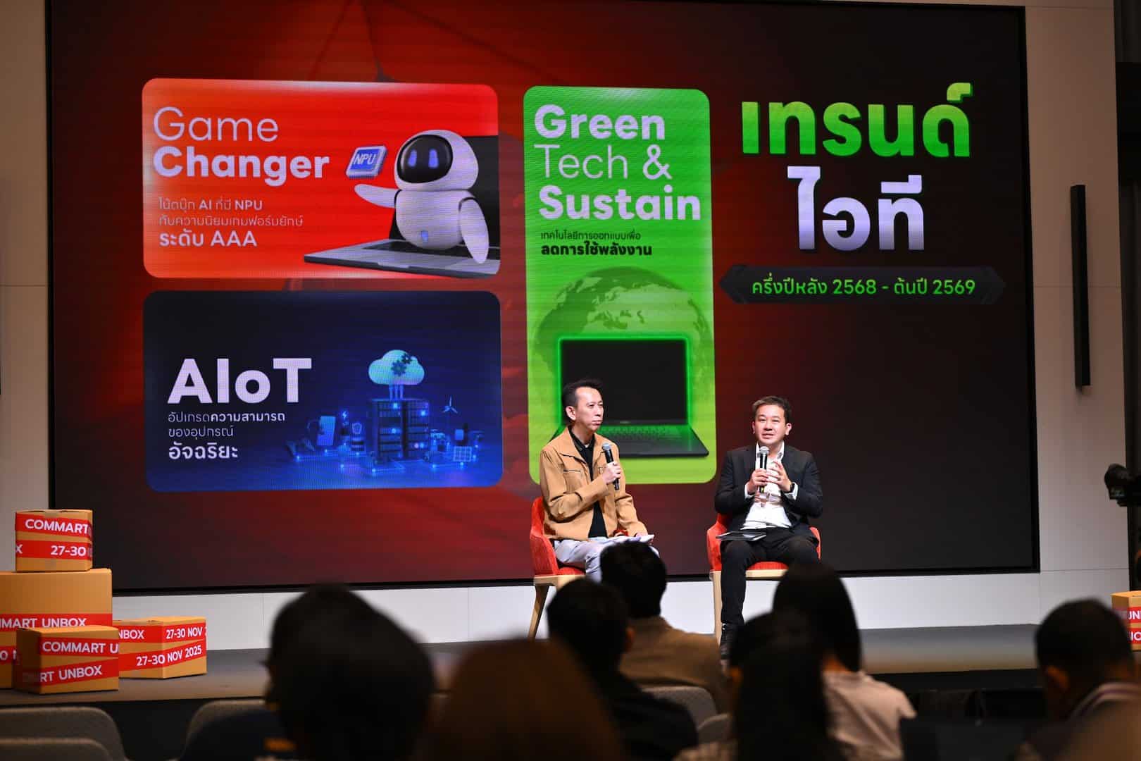 พบกับสินค้าแบรนด์ชั้นนำจาก ACE, Banana, E-Quip, Epson, iStudio by spvi, IT City, JIB, Maru, Zarukon, JIB Mobile, MSI, Speed Computer, Speed Gaming, Studio7, AJAZZ, AMD, Intel, AppleSheep, Ascenti, ASUS, Bewell, Cougar, EDIFIER, ERGOTREND, Lifestyle Technologies, SecretLAB และ เครดิตบูโร พร้อมจัดพิธีมอบรางวัล Commart Awards 2025 เพื่อเลือกสุดยอดสินค้าไอทีแห่งปี 2568