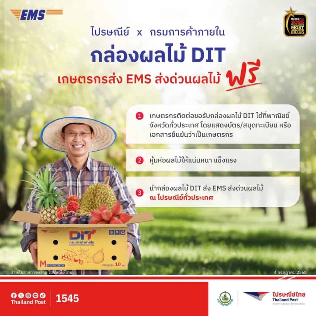 เกษตรกรส่งผลไม้ฟรีทาง EMS ไม่มีค่าส่ง ทำยังไง ?