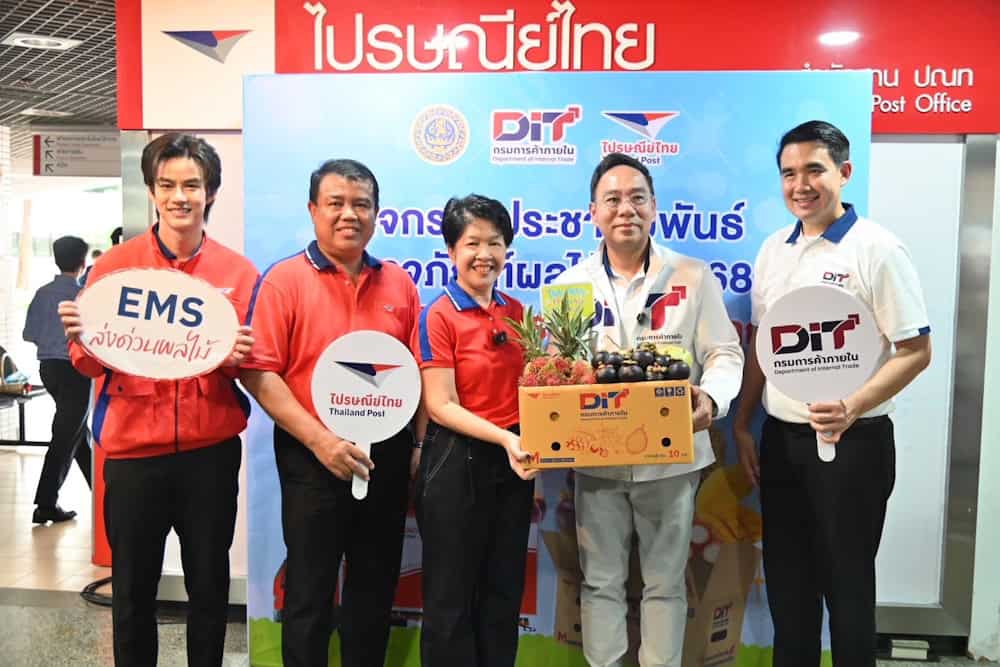 ด้านบริษัท ไปรษณีย์ไทย จำกัด มีความยินดีที่ได้ร่วมเป็นพันธมิตรกับกรมการค้าภายในในการผลักดันผลไม้ไทยสู่ผู้บริโภค โดยมีความพร้อมอย่างเต็มที่ในการให้บริการจัดส่งสินค้าจากสวนถึงปลายทางทั่วประเทศอย่างรวดเร็ว ปลอดภัย และตรงเวลา