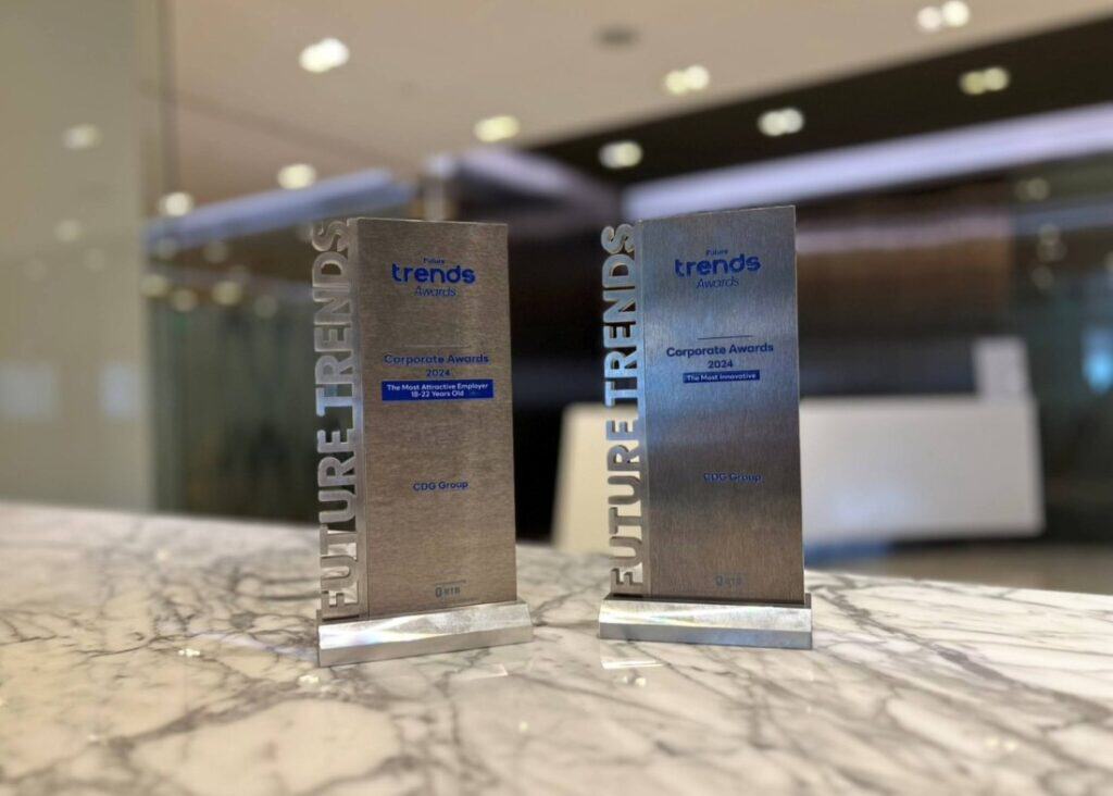 กลุ่มบริษัทซีดีจี รับ 2 รางวัลจากงาน Future Trends Awards 2025 ได้แก่รางวัล The Most Innovative หรือองค์กรที่สุดด้านนวัตกรรม และรางวัล The Most Attractive Employer หรือรางวัลองค์กรที่ดึงดูดนักศึกษาอายุระหว่าง 18 – 22 ปี ตอกย้ำความเป็นผู้นำด้านเทคโนโลยีเพื่อสังคม และพร้อมปรับตัวให้เข้ากับยุคสมัย ดึงดูดคนรุ่นใหม่ที่เพียบพร้อมไปด้วยความสามารถมาร่วมผลักดันสิ่งที่ยิ่งใหญ่แก่สังคมร่วมกัน