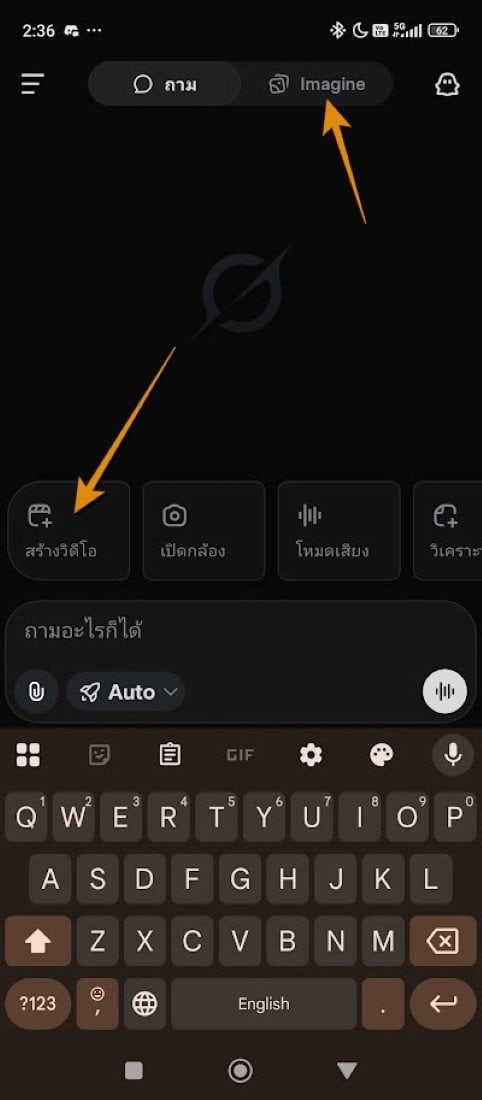 เลือกที่ สร้างวิดีโอ หรือแตะที่แท็บ Imagine ด้านบนก็ได้