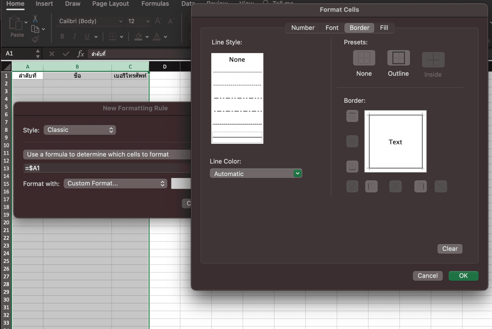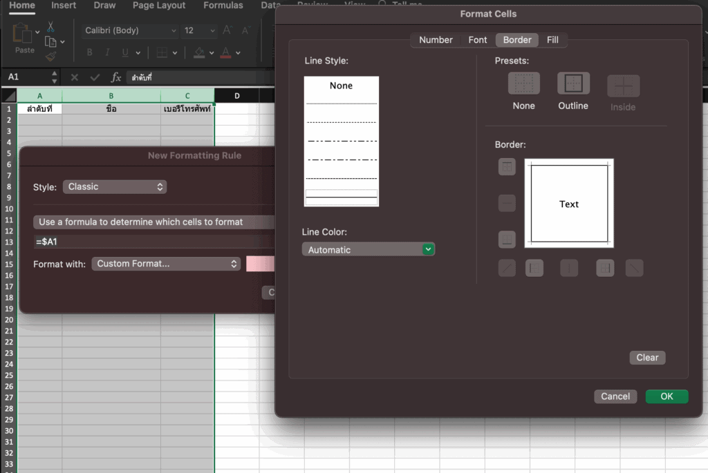 ขั้นตอนการสร้างเส้นขอบตารางอัตโนมัติใน Excel