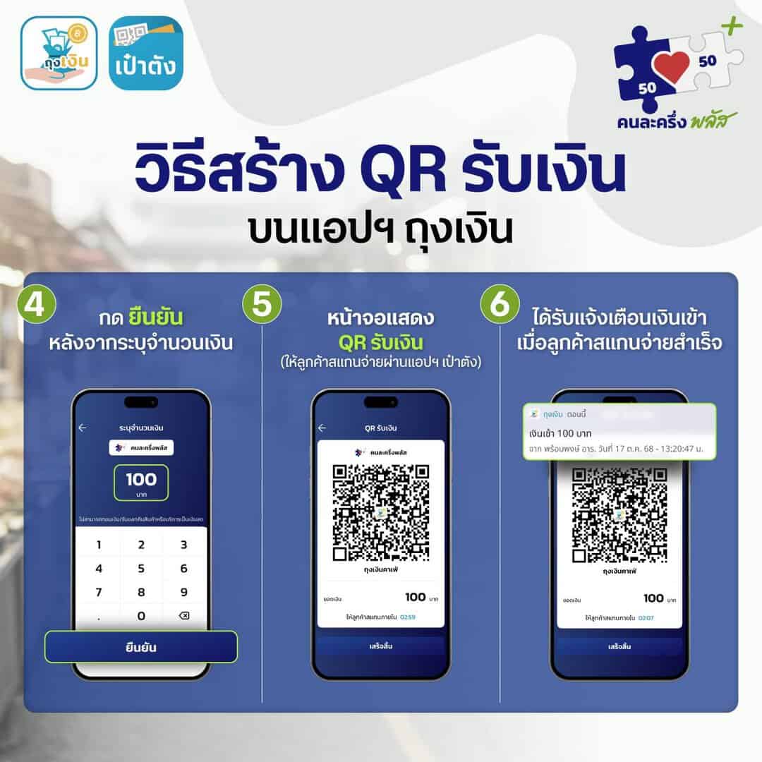 วิธีสร้าง QR รับเงิน คนละครึ่งพลัส ร้านค้าถุงเงินที่เข้าร่วมคนละครึ่ง สามารถรับเงินจากลูกค้าที่จะใช้สิทธิ์คนละครึ่งพลัสได้โดยมีวิธีการดังนี้