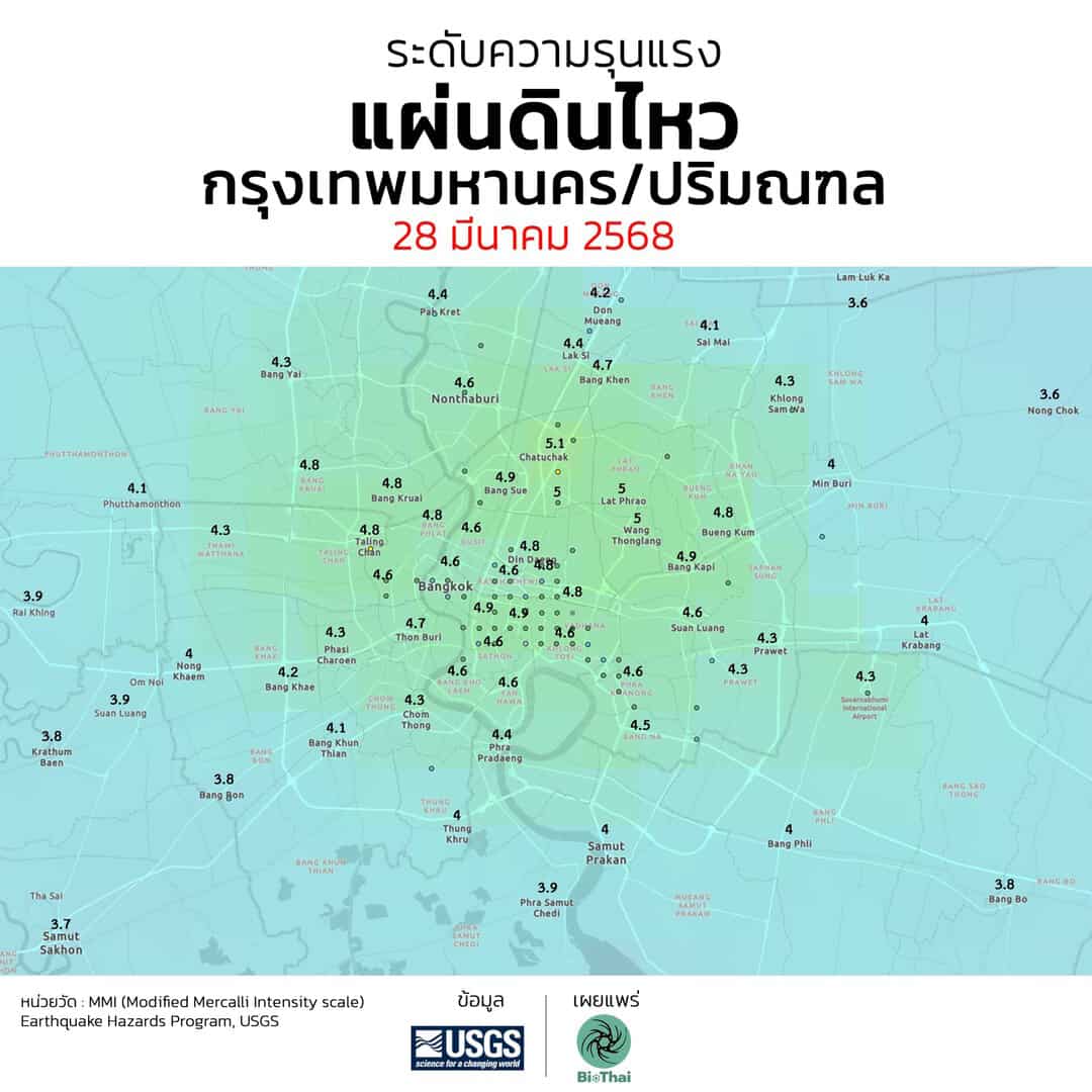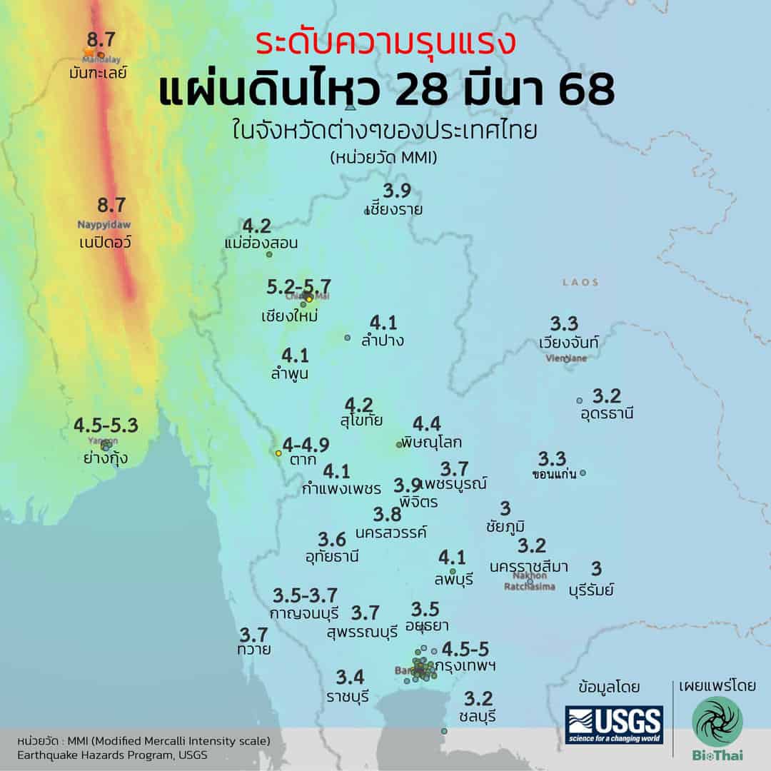 อ้างอิง BIOTHAI และ cover USGS ShakeMap