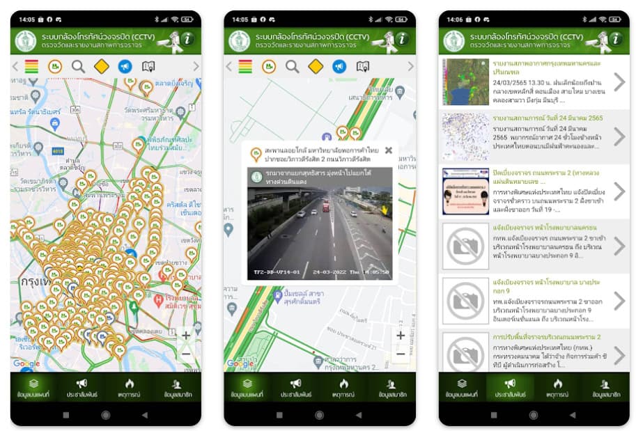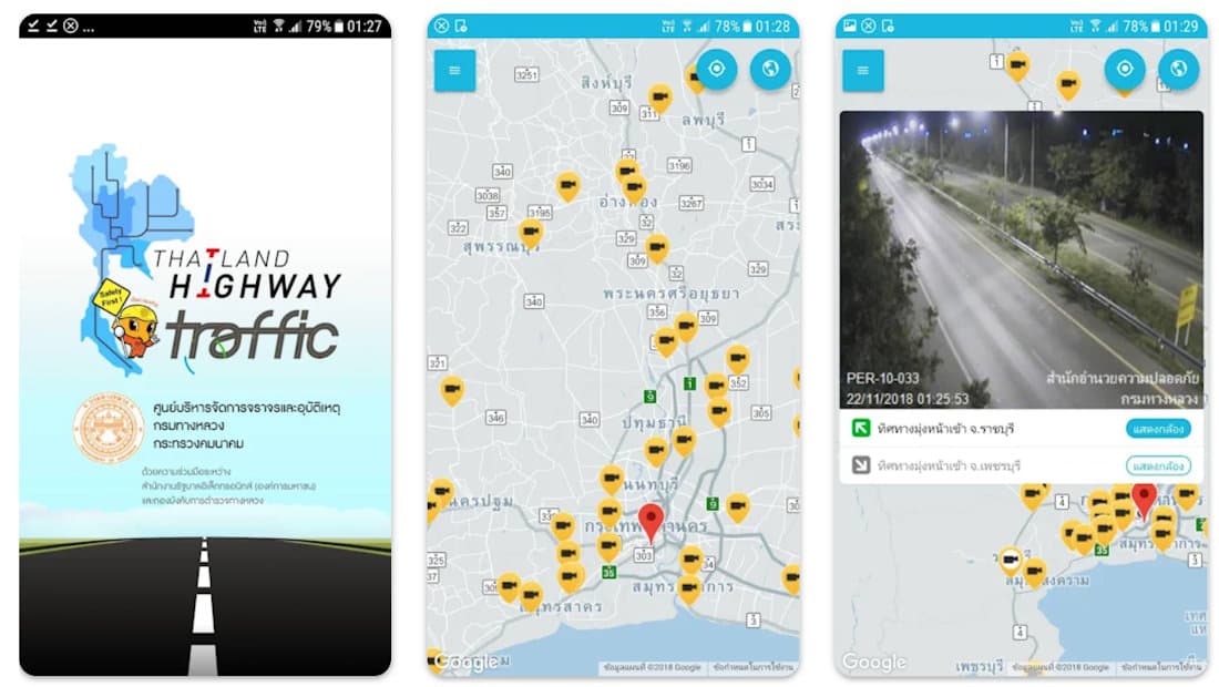 - เพียงเข้าเว็บไซต์ highwaytraffic.go.th ก็จะแสดงเป็นแผนที่ประเทศไทย พร้อมไอคอนรูปดาวแทนกล้อง CCTV นั่นเอง เมื่อคลิกที่ดาว จะแสดงวิดีโอ CCTV ที่อัปเดตตลอดเวลาให้คุณชมด้วย นอกจากนี้ยังมีเวอร์ชั่นแอปด้วยชื่อ Highway Traffic เช่นกัน ดาวน์โหลดได้ทั้งบน App Store สำหรับ iOS และ Play Store สำหรับ Android โดยเมื่อแตะที่หมุดที่มีไอคอนกล้อง ก็จะเห็นถนนและรถที่แล่นผ่านเห็นสภาพจราจรบริเวณนั้นทันที เหมาะสำหรับผู้ที่เดินทางไกลข้ามจังหวัด หรือผู้ที่อยู่ใกล้ทางหลวง ซึ่งจะเห็นสภาพจราจรชัดเจนผ่าน CCTV ที่ติดตามทางหลวง นอกจากนี้ยังใช้วางแผนทางเดินทางท่องเที่ยวช่วงหยุดยาวด้วย