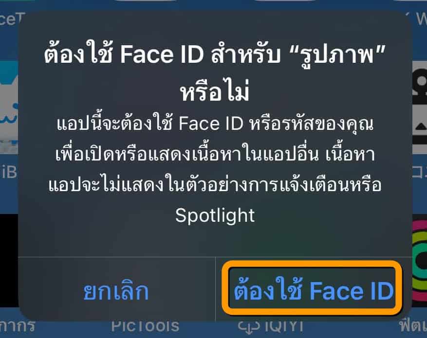 เลือก ต้องใช้ Face ID จากนั้นทำการสแกนด้วย Face ID ให้เรียบร้อย