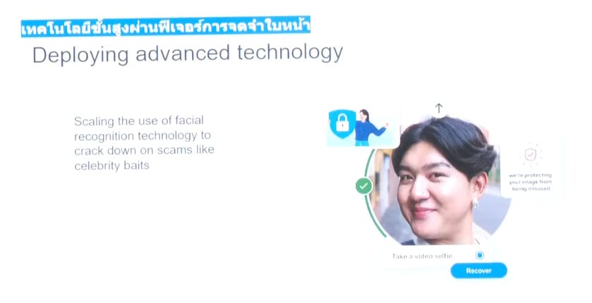 - AI จดจำใบหน้า: ตรวจจับการใช้ภาพบุคคลมีชื่อเสียงในโฆษณาหลอกลวง และช่วยกู้คืนบัญชีที่ถูกแฮ็ก