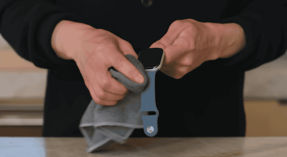 ใช้ผ้าที่ไม่ทำให้เกิดรอยเช็ด Apple Watch ให้แห้งสนิท