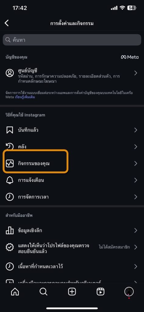เปิดแอป Instagram บนมือถือ (Android / iPhone) แล้วไปที่หน้าโปรไฟล์ของคุณ (แตะรูปโปรไฟล์มุมล่างขวา)