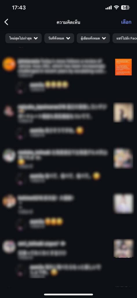 คุณจะเห็นรายการความคิดเห็นทั้งหมดที่เคยโพสต์ — สามารถใช้ตัวกรองเพื่อเรียงตามวันที่ได้