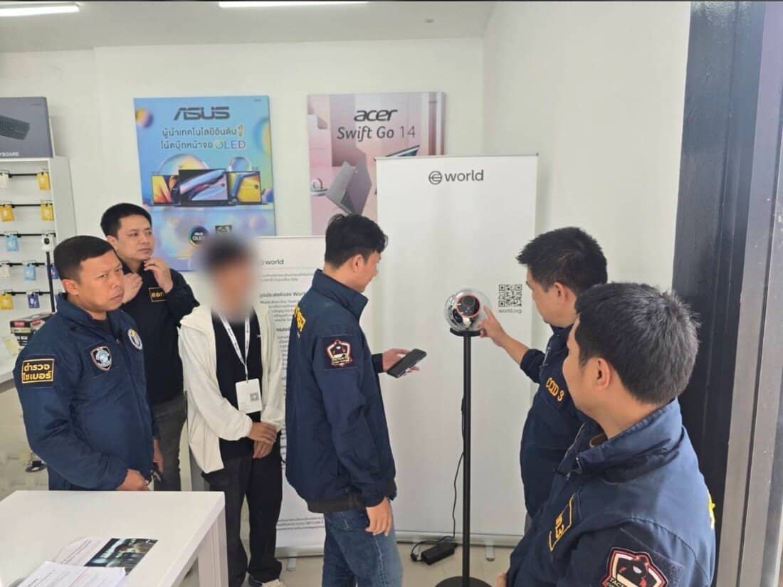 การสืบสวนเริ่มจากพบโพสต์บนโซเชียลเชิญชวนให้สแกนม่านตาแลกรับเหรียญ ก่อนตำรวจส่งสายลับเข้าตรวจสอบ พบมีการรับแลกเหรียญ 30 WLD เป็นเงินสด 900 บาท หรือราวเหรียญละ 30 บาท ซึ่งเข้าข่าย “ประกอบธุรกิจสินทรัพย์ดิจิทัลโดยไม่ได้รับอนุญาต” ตาม พ.ร.ก.สินทรัพย์ดิจิทัล พ.ศ.2561