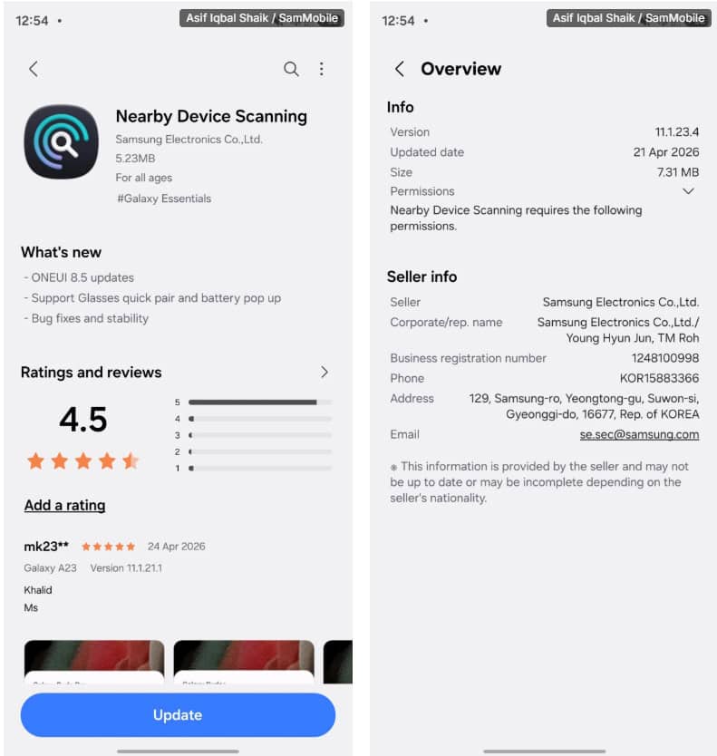 ข้อมูลนี้ถูกพบในแอป Nearby Device Scanning (เวอร์ชัน 11.1.23.4) ซึ่งเป็นแอปส่วนกลางที่ใช้สำหรับตรวจจับและเชื่อมต่ออุปกรณ์รอบข้างของ Samsung โดยในรายการเปลี่ยนแปลง (Changelog) มีการระบุชื่อ “Glasses” เพิ่มเข้ามาอย่างชัดเจน พร้อมรองรับฟีเจอร์ Quick Pair และการแสดงระดับแบตเตอรี่ในลักษณะเดียวกับที่ปรากฏใน Galaxy Buds หรือ Galaxy Watch