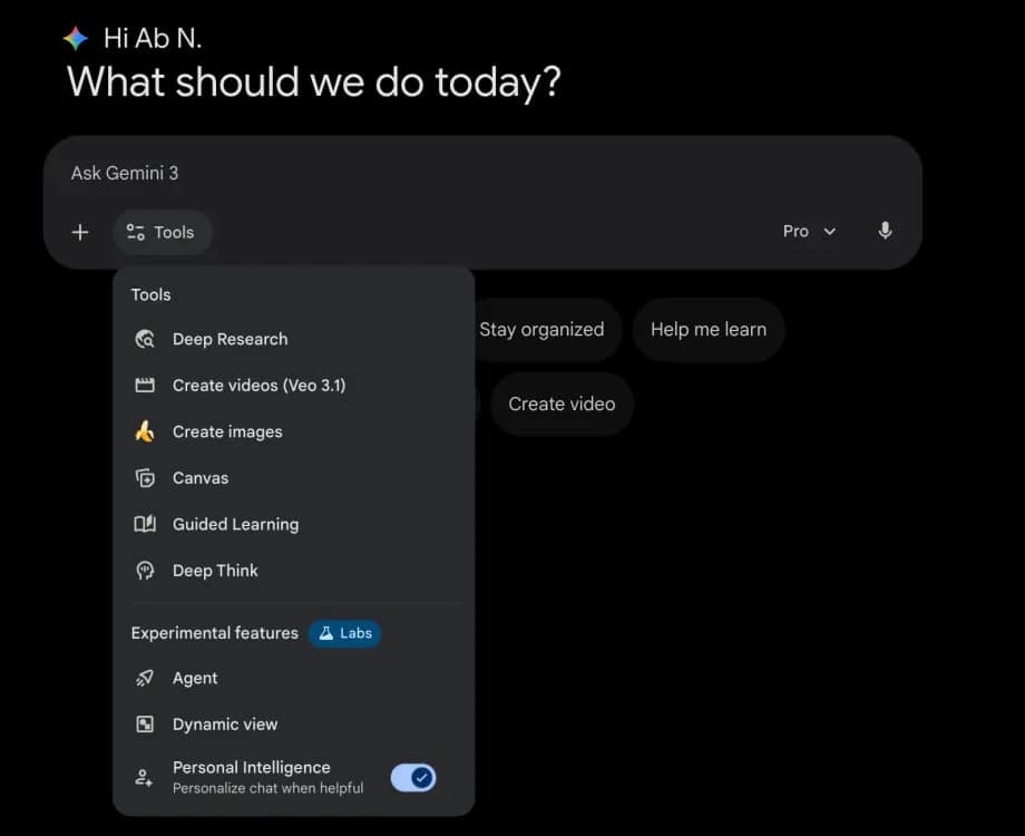 Gemini อัปเดตใหม่ เพิ่มหมวด Labs และ ตั้งค่าเปิดปิด Personal Intelligence