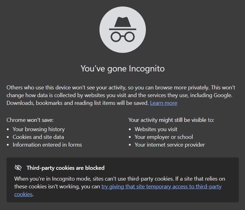 หากเปรียบเทียบให้เห็นภาพ การใช้โหมดนี้เหมือนกับการเข้าพักในโรงแรม เมื่อคุณเช็คเอาท์ พนักงานจะทำความสะอาดห้องจนไม่เหลือร่องรอยสำหรับผู้เข้าพักคนถัดไป สิ่งที่จะหายไปเมื่อปิดหน้าต่าง Incognito ได้แก่ ประวัติการเข้าชม, คุกกี้ และข้อมูลที่กรอกในแบบฟอร์ม อย่างไรก็ตาม โหมดนี้ ไม่สามารถป้องกันไวรัส หรือปิดบังหมายเลข IP Address จากโลกภายนอกได้