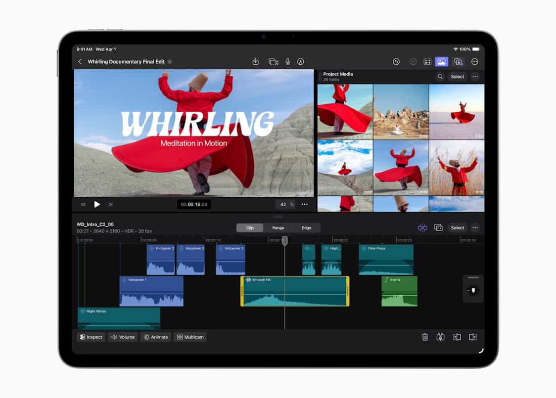 ไฮไลต์สำคัญที่สุดของ iPad Air 2026 คือการเปลี่ยนมาใช้ชิป Apple M4 (จากเดิม M2/M3) ซึ่ง Apple เผยว่าให้ประสิทธิภาพ CPU เร็วขึ้นสูงสุด 30% และประสิทธิภาพโดยรวมเร็วขึ้นถึง 2.3 เท่าเมื่อเทียบกับรุ่นชิป M1 นอกจากนี้ยังมาพร้อม GPU ที่รองรับ Hardware-accelerated Ray Tracing เป็นครั้งแรกในตระกูล Air ช่วยให้การเล่นเกมระดับ AAA และการทำงานกราฟิก 3D ลื่นไหลสมจริงกว่าเดิม รวมถึงสามารถตัดต่อวิดีโอระดับโปรด้วย Final Cut Pro บน iPad Air ได้ด้วย