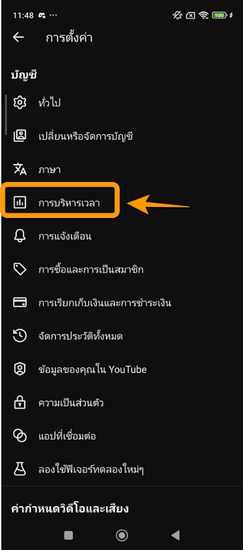 เลือกเมนู “การบริหารเวลา” (Time management dashboard)