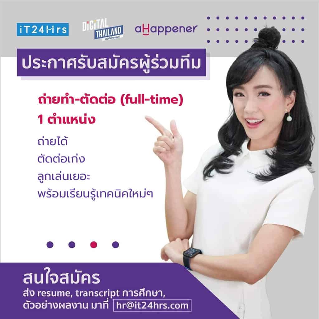 2) ถ่ายทำ-ตัดต่อ (full-time) 1 ตำแหน่ง